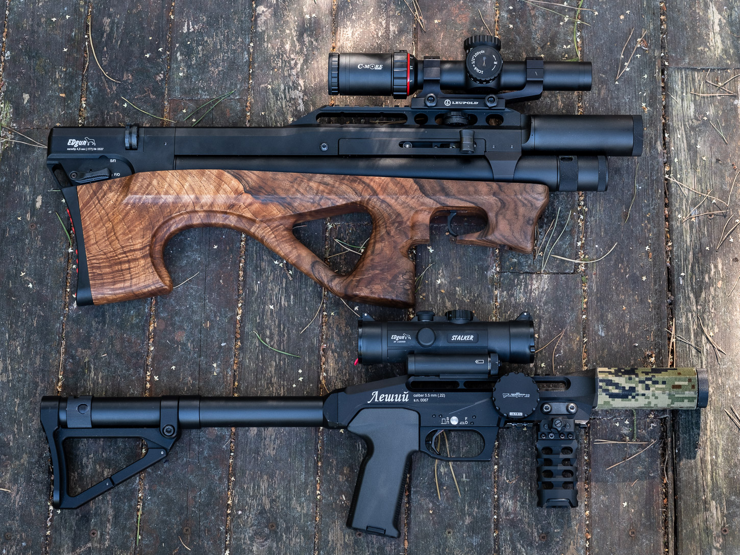 Scope combo no.3: with Stalker 6x scope. Well, I've been using Stalker 6x on Leshiy since spring 2018, so it's been quite some time now. I think it's one of the best choices if you're looking for a really compact size, super robust construction and pinpoint precision to about 50 yards (it’s an adjustable parallax optics). It’s a match made in heaven and I decided to keep Stalker 6x on Lelya. C-More 1-6x variable scope will stay on Leshiy, which also makes TERRIFIC combo (and it looks amazing too). I've said more about my Stalker last year on the blog here: https://www.edgunleshiy.com/blog/2018/8/9/edgun-stalker-6-the-game-changer/