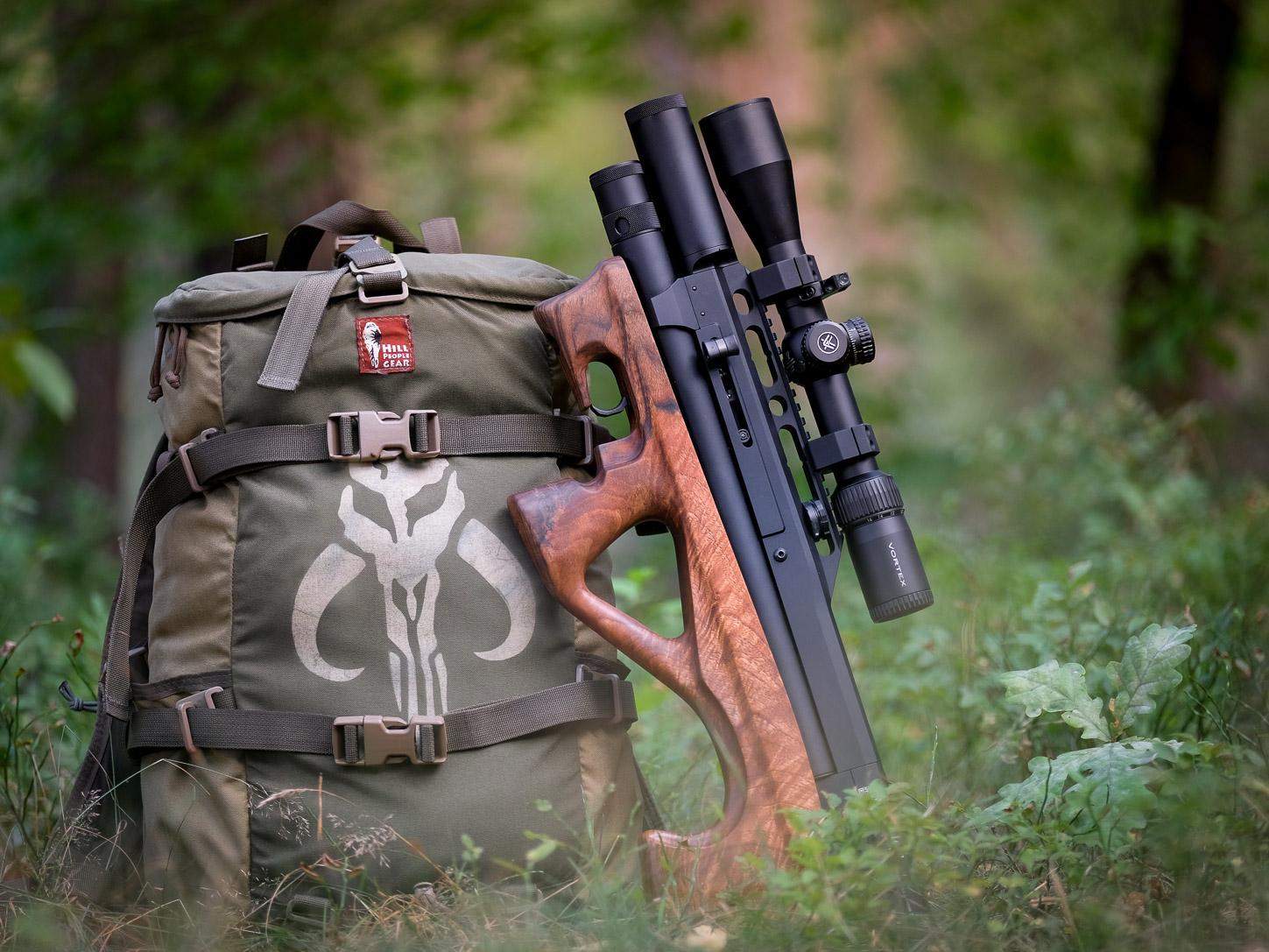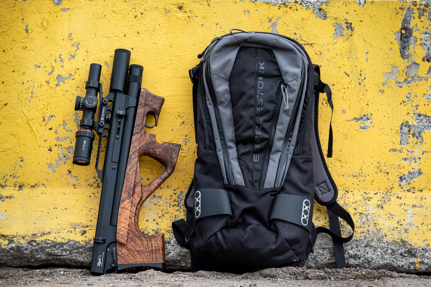 Yeah, I jumped a little bit late on the Lelya 2.0 bandwagon – at least half year after it appeared in shops. And that was my initial setup: .177 cal (set to FT/HFT energy level of 12 fpe), 1-6x24 C-More competition scope, Leupold mount, Eberlestock S25 Cherry Bomb pack, two polymer mags and JSB Exact ammo. Forgot about Vortex Ranger 1000 rangefinder. Overall not so bad for a starter kit, right? I must admit, overall look of this combo is unique and beautiful! Also thanks to nice figuring in that walnut stock. As far as I know Edgun changed supplier of the wood material not long before I got my Lelya, so if you’d purchase your Lelya now you should get her dressed in a really nice timber (btw, there’s a laminate option too). Overall look of that little bullpup resembles more 'micro Matador R5M' than old-school single shot Lelya. And indeed Lelya 2.0 shares all mechanics with new Matador, so should be really darn robust and reliable. And accurate too! The new one is not as compact as the old one (about 2 inches longer) plus it’s is considerably heavier due to bigger tank diameter, chunkier moderator and multishot mechanics of course. And new rock-solid chassis. But still fits perfectly inside my Eberlestock S25 Cherry Bomb pack, so it’s cool.