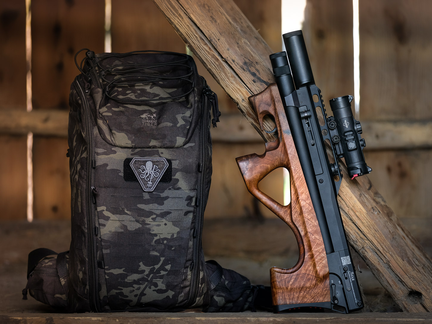 Vacation time... yep, Lelya makes nice travel companion for dedicated airgunners, which easily fits in a mid-sized backpack. I carried my Lelya in Tasmanian Tiger Modular 30, Arcteryx LEAF Assault 30 and of course Eberlestock S25 Cherry Bomb. At 12 fpe it’s first of all perfectly legal almost anywhere, but also a very quiet pcp, actually inaudible at 10 yards aways from the shooter - more than enough for holiday plinking. Weekend in a backcountry? Sunday in the forest? Or just afternoon fun shooting after long day in the office? My Lelya .177 is a perfect precision plinker - short & quiet, doesn't attract unwanted attention. And fully legal anywhere and anytime (but - safety first, of course). However, if you live in US or other area with no power restrictions you can enjoy Lelya in .25 cal and up to 55 fpe. That should be more than enough for any pest control around the farm. Sure thing, shot count would vary depending on muzzle energy tune. At default EU factory setting (120 bar on regulator) when filled to 250 bar I was getting 70+ shots at 12 fpe, which is not bad. At 50 fpe I’d be empty after 2 mags I guess.