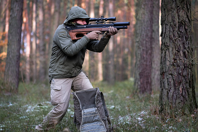 At 50 yards, a half inch group wasn’t a problem when shooting off the bipod. I tried both versions of JSB’s 7.62mm ammo, with their 50 grain at an average speed of 836 fps and 44 grain at 869 fps. So both had a healthy muzzle energy of 100+ Joules. By the way, I was quite glad that the .30 cal ammo could be easily loaded with gloves on a cold day, like the Arc’teryc Contact Gloves. Good luck trying that with .177!